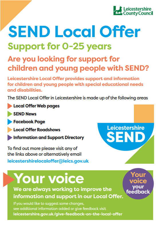 Supporting Special Educational Needs and Disabilities across Leicester, Leicestershire and Rutland. For more details contact: Leicester City - families.leicester.gov.uk Leicestershire - leicestershire.go.uk/SEND Rutland - ris.rutland.gov.uk