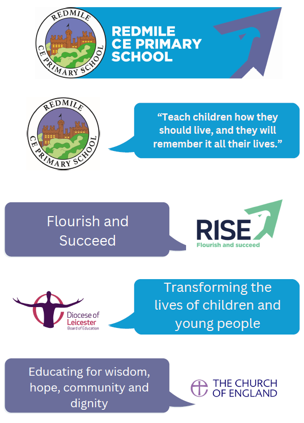 We are a Church of England School and are associated with the Parish Church, St Peter's. We have a daily act of Collective Worship which reflect upon Christian and British Values. Religious Education is taught by all class teachers following Leicestershire guidelines. Children learn about the Christian religion in a non-denominational framework and are taught about events, stories and practices of other world religions. Under the Education Reform Act, parents and carers have the right to withdraw their child from Religious Education or Collective Worship.